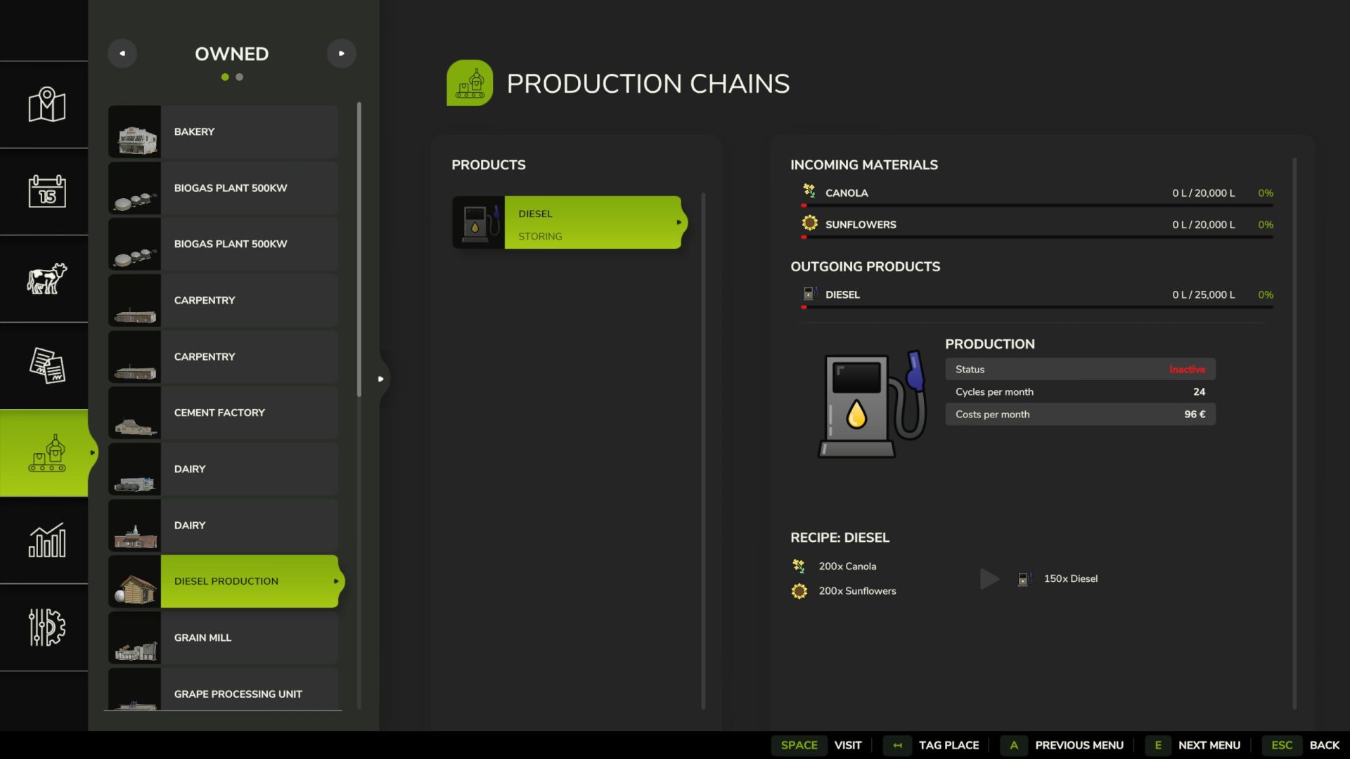 You need rapeseed and sunflower for production.