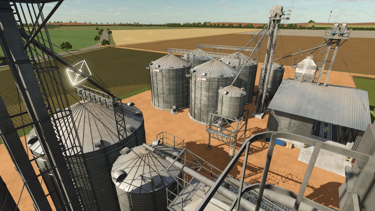 Package with two medium-sized silos, each with different capacities, ideal for storing your products. The barn walls are customizable, with options for exposed bricks or concrete cladding. The concrete color can be changed, just like the barns in the game.