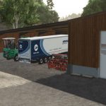 In reality, this building is used as a highway maintenance depot and serves as a storage facility for salt in winter. In Farming Simulator, it can also effectively serve its purpose as a storage hall for potatoes or grain.