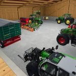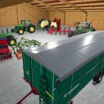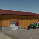 Two wooden barns for some machines with or without storage racks to accommodate pallets or attachments.