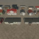 A selection of wooden houses and garages and several decorative objects. Garages can also store hand tools.