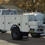 This truck has a 4000 PSI pressure washer on the rear right corner of the service body, along with a water tank in the bed. This pressure washer has a Honda GX390 with electric start. You can use it by selecting the option in the store to add the pressure washer, filling the truck with water, walking up to the hose reel at the back of the truck, and press R to turn on the pressure washer. You can also adjust the pressure to your liking.