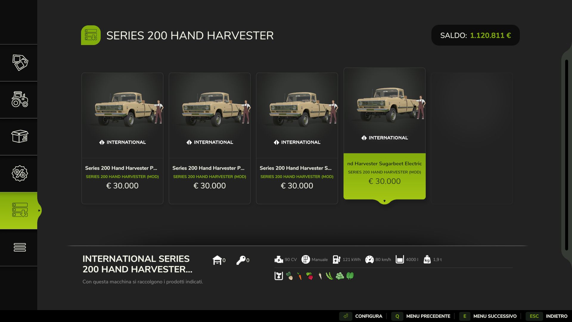 An optional mod let you unload crops into a fillable pallet. Potato and some vegetables can already by game design, i added those missing.