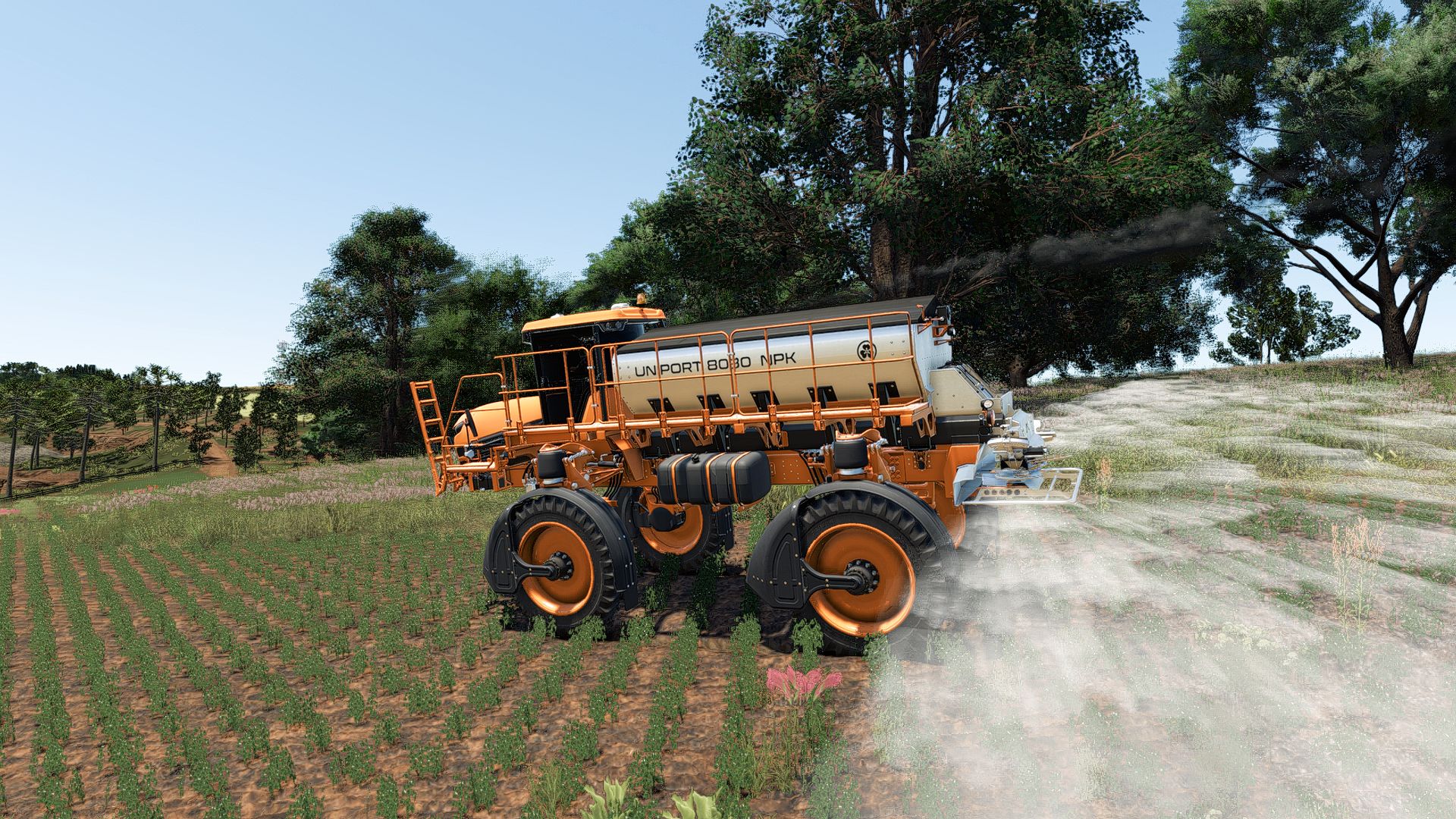 Uniport 8030 NPK has a 8,000 kg capacity reservoir and an application range of up to 50 m for fertilizers, besides also allowing corrective applications.