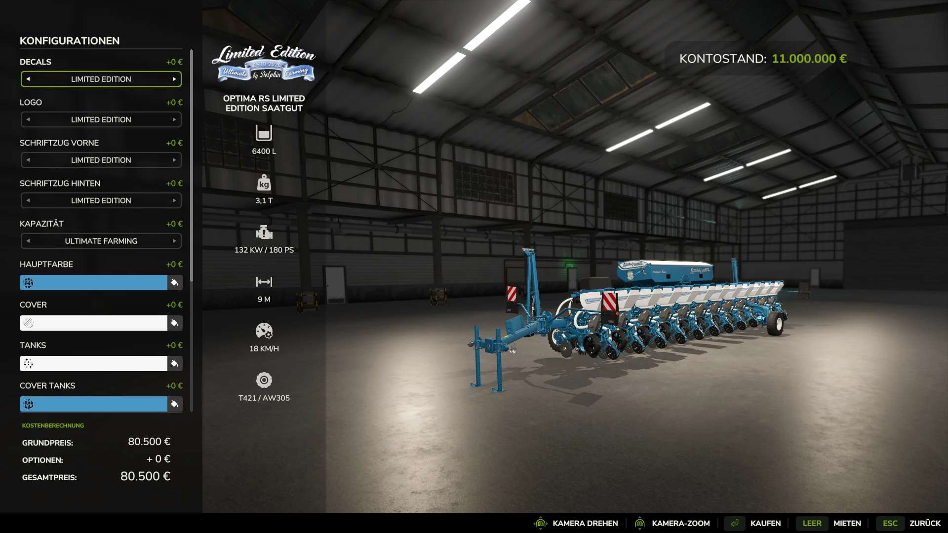 Capacity selection: Seed/Fertilizer Standard 660/2000, Limited Edition 1050/3000, or Ultimate Farming 2100/6000