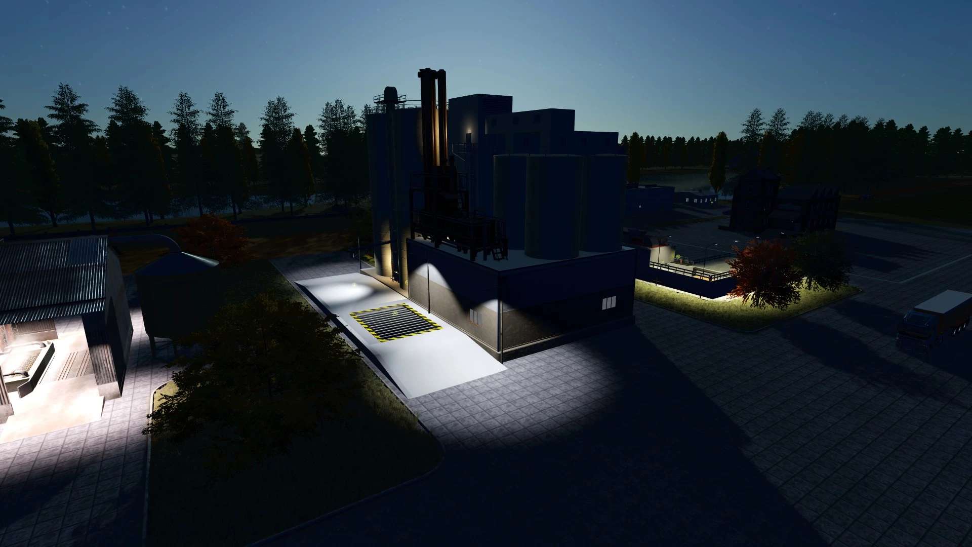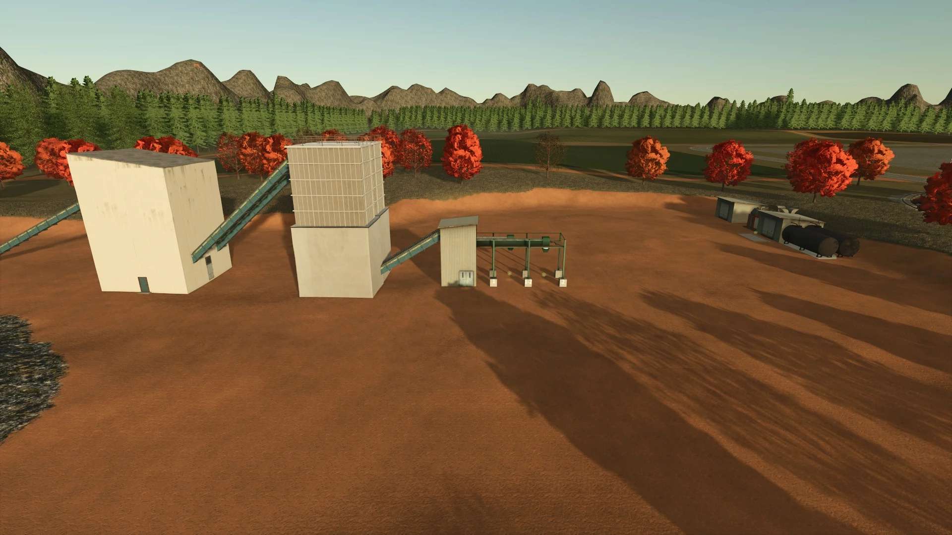 At the beginning we have a yard, two fields and a machines parked.