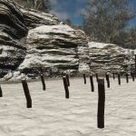 Damaged Barbed Wire Fence: a worn and rustic version, featuring tilted posts and loose or fallen barbed wires, perfect for abandoned areas, old pastures, or more natural and aged environments.