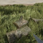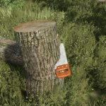 Wood cutting is activated with the left mouse button, allowing precise and controlled use. While cutting, the tool emits an authentic wood sawing sound, enhancing realism. At the same time, wood chip particle effects are generated at the cutting point, visually representing the sawing process.