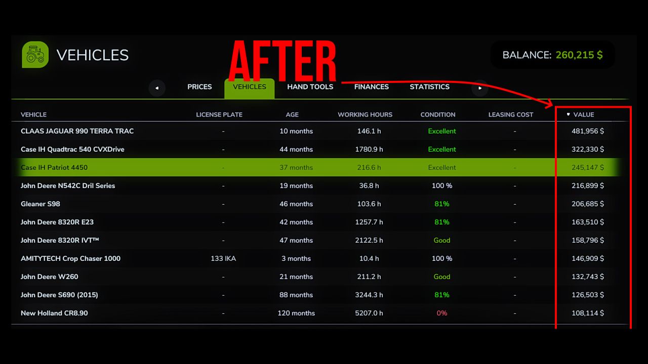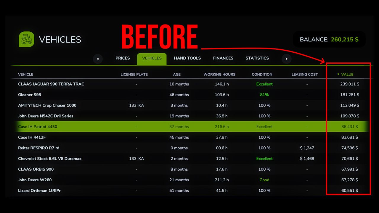 Iron Depreciation introduces an alternative vehicle value system built on real agricultural economics data from the USDA, Iowa State Extension Service, and Machinery Pete auction records. If you prefer resale values that more closely follow documented real-world depreciation curves, this mod provides that experience.
