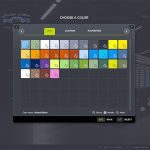 Color selection for main color, design color, frame, cover, drawbar, scratching floor, silage canister, tarpaulin, lettering and rim color.