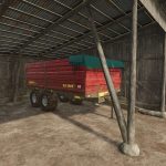 This mod offers three capacities from 5.6 m³ to 18.4 m³. On some configurations sides can be opened for bale and pallet loading. You can also choose not to have sides at all, or a handy frame for easy and safe transport for 125 cm round bales. In addition, you can equip the tipper with a filling auger from Jussi-Tuote to make filling the seeder easier and faster. Both seeds and fertilizer can be filled from the same trailer thanks to the partition wall included in the auger package. Other optional accessories include different cover options and a trailer hitch.